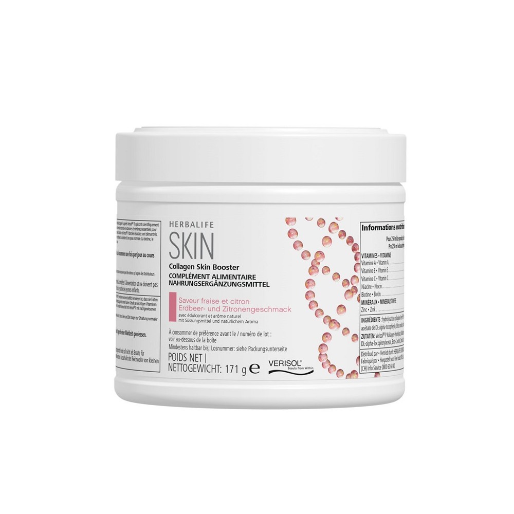 Es ist reich an wichtigen Vitaminen und Mineralstoffen, wie Biotin, Jod, Vitamin A, Niacin und Zink, welche zur Erhaltung einer normalen Haut beitragen. Collagen Skin Booster enthält außerdem Selen und Zink, welche zur Erhaltung normaler Haare und Nägel beitragen.